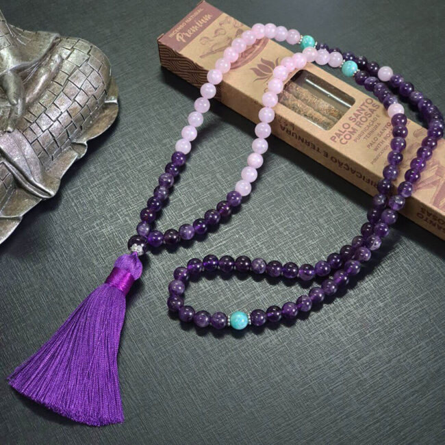 O Japamala é um cordão de contas usado na meditação e oração em tradições como o hinduísmo e budismo. Com origem na Índia, ele ajuda a manter o foco durante a repetição de mantras. O número 108 é considerado sagrado e está associado a diversas tradições, como a astrologia védica, a dualidade dos fonemas em sânscrito e ciclos respiratórios no Tantra. Além de ferramenta espiritual, o Japamala é também um amuleto de proteção e equilíbrio.