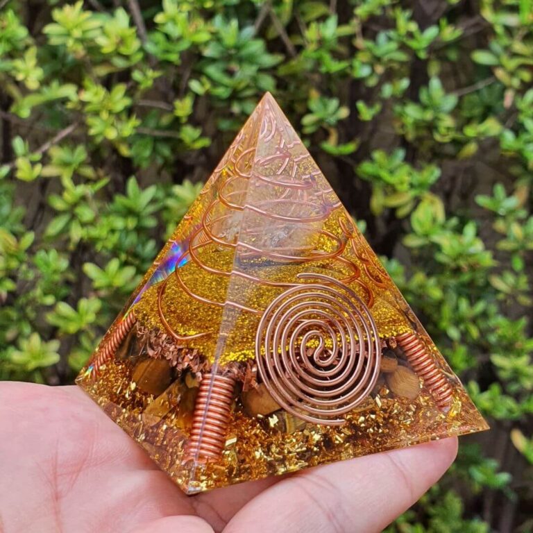 Esgotado! Orgonite Pirâmide Proteção e Cura Espiritual 6cmR$159,90 O preço original era: R$159,90.R$129,90O preço atual é: R$129,90.