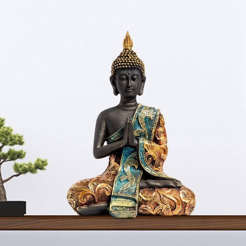 Estatueta de Buda meditando com o Namaskara mudra. A estueta é de alta qualidadde e é rica em detalhes.