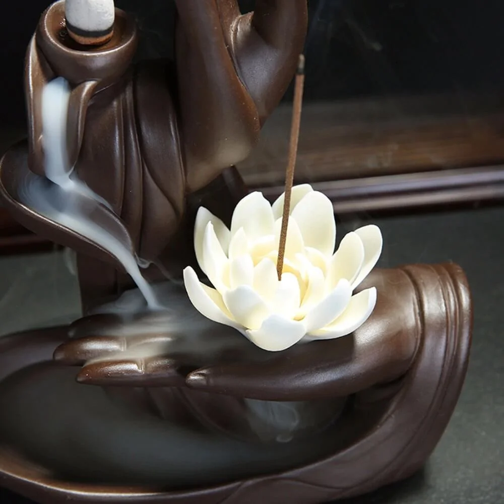 Lindo incensário formando as mãos de Buda em meditação.