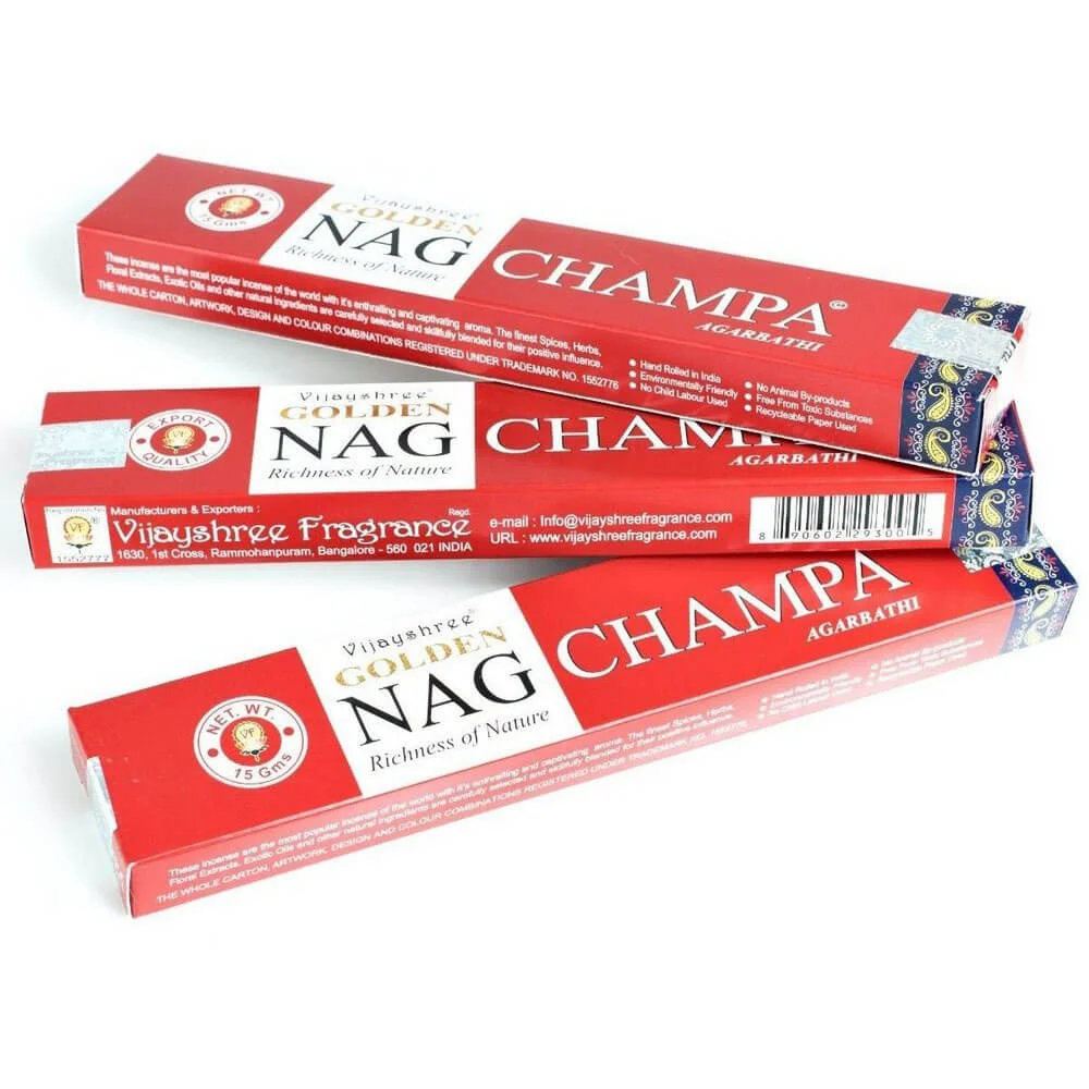 Os incensos Vijayshree Golden Nag são os mais populares do mundo precisamente por causa de seus aromas fascinantes e atraentes. As especiarias, ervas, extratos de flores, óleos exóticos e outros ingredientes naturais da melhor qualidade foram cuidadosamente selecionados e habilmente misturados para maximizar seus efeitos positivos.