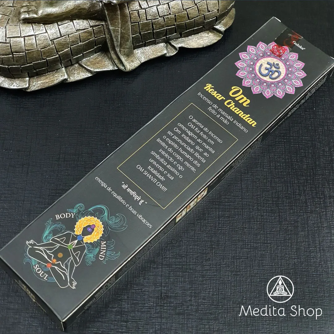 Incenso de Massala Indiano Goloka Om Kesar Chandan, energia de equilíbrio e boas vibrações.