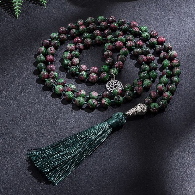 Japamala feita de amazonita e olho de tigre fosco 8mm e com 108 contas.