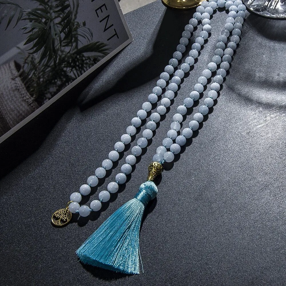 Japamala com 108 contas de 8mm feito de calcedônia azul.