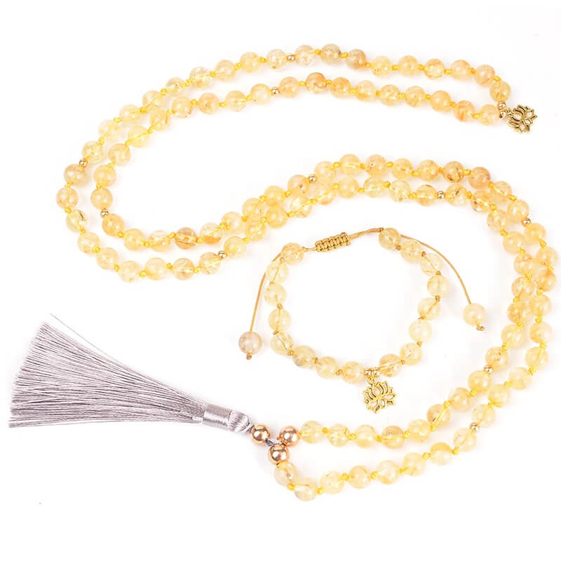 Japamala com 108 contas de 8mm feito com o cristal citrino.