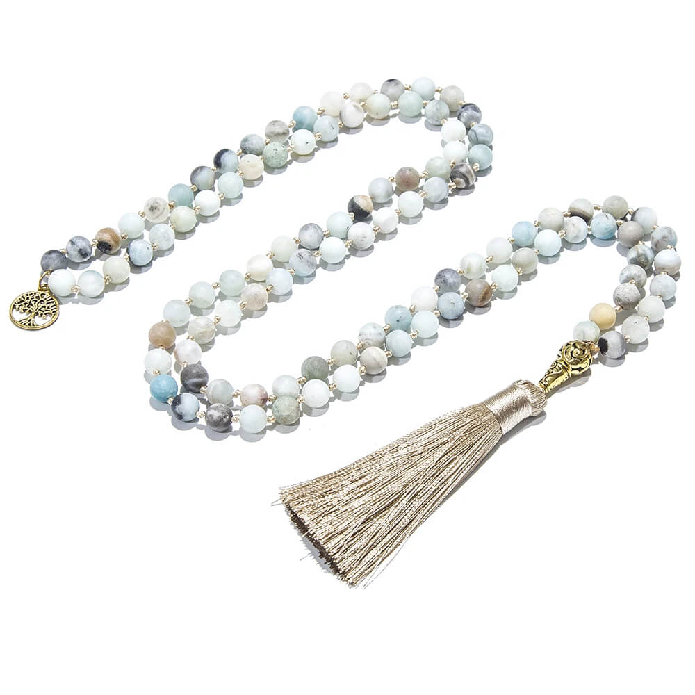 Os nós entre as contas são um diferencial importante: além de aumentarem a resistência e a durabilidade do japamala, facilitam a contagem durante a recitação de mantras, evitando que as contas deslizem com facilidade excessiva e ajudando a manter o foco na prática.