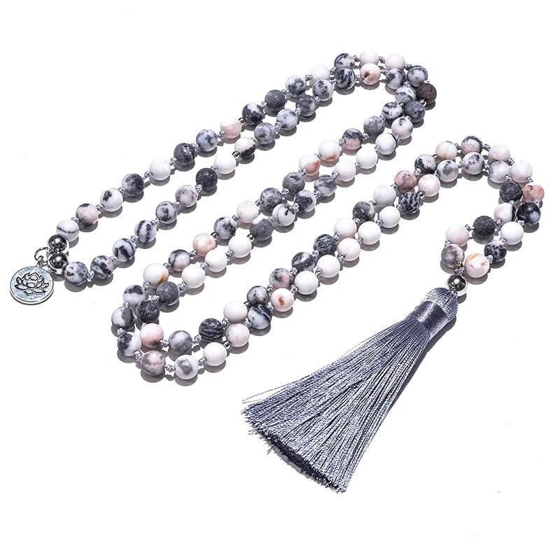 Lindo japamala de 108 contas de 8mm feito da pedra jaspe frisado fosco.