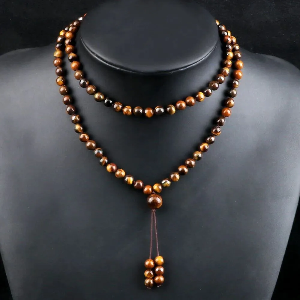 Apresente equilíbrio e coragem em sua vida com nosso japamala de 108 contas, confeccionado com pedras de Olho de Tigre de 6 mm.