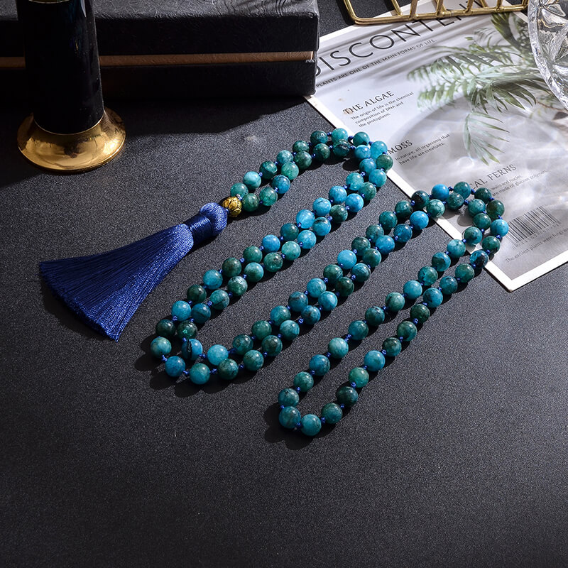 Maravilhoso japamala de 108 contas de 8mm feito da pedra Apatita.