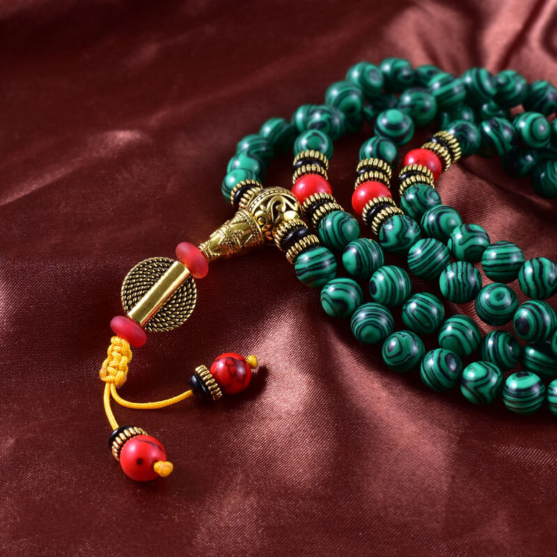 Lindo japamala tibetano de 108 contas feito de malaquita de 8mm.