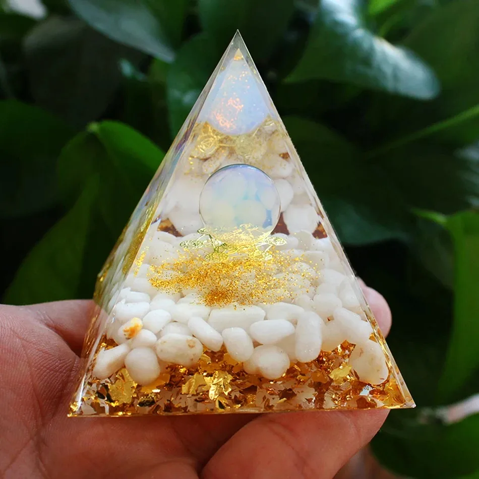 A Orgonite em forma de pirâmide é a mais famosa e a mais escolhida para ambientes porque forma um ponto de força de transmutação.