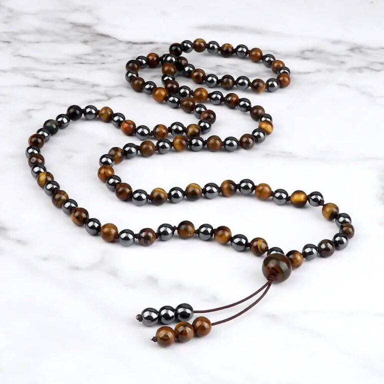 Japamala 108 Contas Hematita e Olho de Tigre - Energia de Proteção e Foco