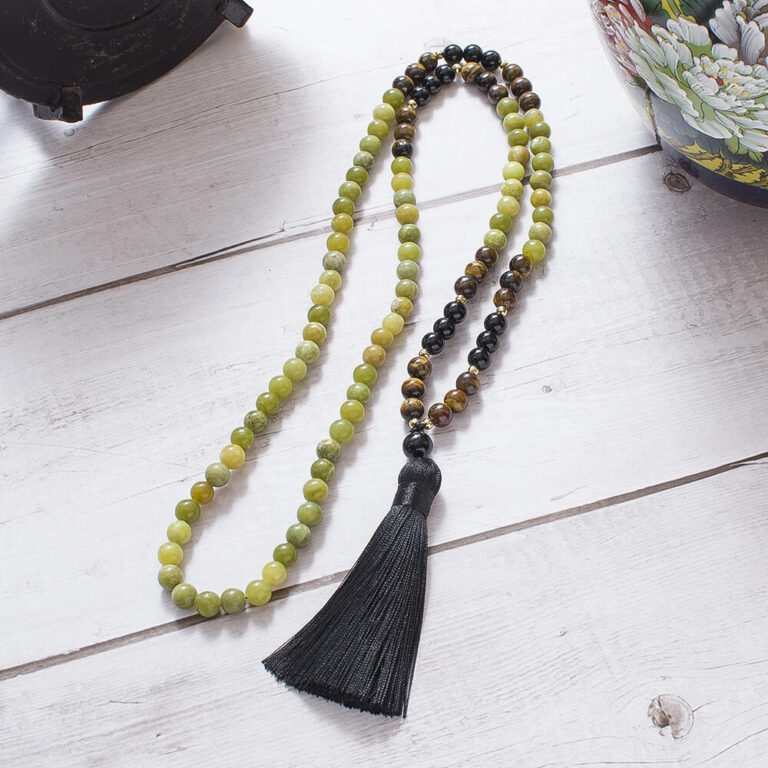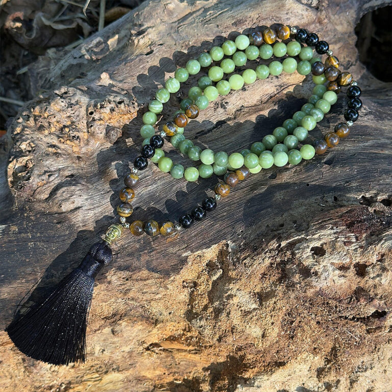 Japamala Jade Verde, Olho de Tigre e Ônix - Conexões Espirituais